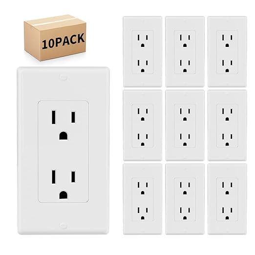 10 Pack – POWAWINI Standard Electrical Outlet 15 Amp, 2 Pole 3 Wire, Non-Tamper Resistant, NEMA 5-15R, Self-Grounding Residential Grade, UL Listed, White Decorator Receptacle with Wall Plate and Screw
