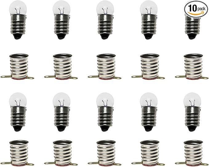 10PCS E10 2.5V/0.3A Miniature Screw Base Light Bulbs and 10PCS E10 Golden Light Socket Bulbs Lamps Base Holder for Home Experiment Circuit Electrical Test Accessories