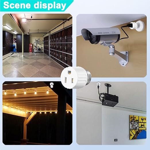 5.The 3 prong light socket adapter is designed to supply electricity to electrical appliances safer.This light bulb outlet can be used to get power to you balcony,porch,garage door opener,front door security camera system power supply, door bell,Christmas or Halloween decorative holiday lights