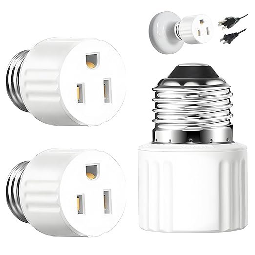 2-Pack Light Socket to Plug Adapter, E26 Light Socket Splitter,Convert Light Bulb Socket to Electrical Outlet,Polarized 2/3 Prong Outlet Converter for Garage & Porch,White