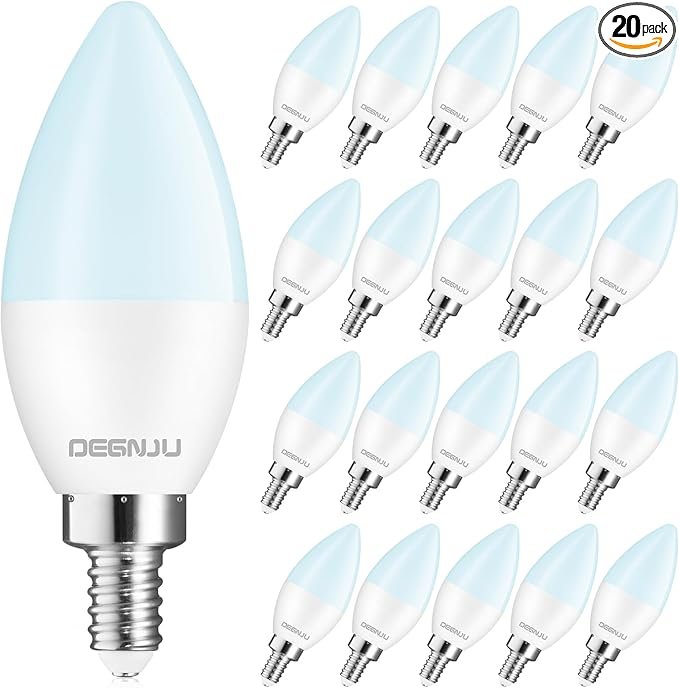 20 Pack Chandelier Light Bulbs 60 Watt Equivalent, Candelabra LED Light Bulbs, E12 LED Bulb Daylight 5000K, Type b Light Bulb 5.5W, Candelabra Base, 120V, B11 Candle Light Bulb, Non-Dimmable