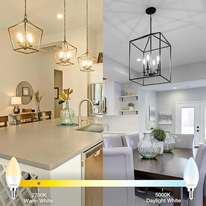 Energy Efficient: These chandelier light bulbs can replace 60W incandescent bulbs with only 5.5W used, saving up to 90% on energy costs. And its lifespan is over 15,000 hours, which can largely reduce replacement frequency, making it an ideal choice for home lighting