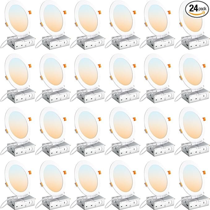 DLLT LED Recessed Ceiling Light: 24 Pack 6 Inch Slim Recessed Lighting for Kitchen – 5CCT Dimmable Canless Wafer Downlight for Living Room – 725LM Brightness 12W 120V Can Lights for Bedroom ETL FCC