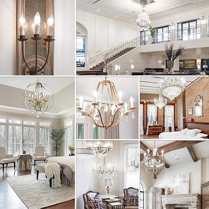 • Candelabra LED Bulb Dimmable – These LED bulbs are dimmable version.You can adjust the light brightness via LED dimmers from 10%-100% to create the perfect atmosphere to meet your different needs.These chandelier bulbs can compatible with most of modern LED dimmers in US.