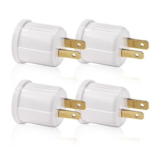 Outlet to Socket Adapter, Plug-in Light Socket, Convert Outlet to Light Bulb Socket, Polarized 2-Prong Outlet to E26 E27 Screw Base Bulb Socket, 660 Watt, 125 Volt, UL Listed (4-Pack)