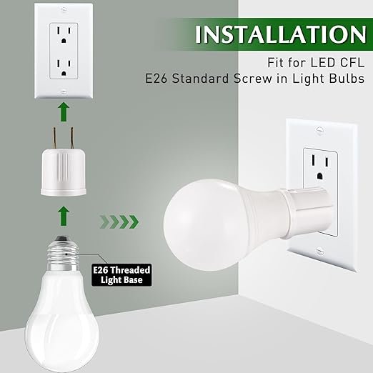 HANDY ADAPTER -Simply Plug & Play. Plug a bulb directly into existing outlet. Unplug when you want to turn it off. Great for an extra light, temporary light. Pairs well with motion sensor light bulbs in the garage