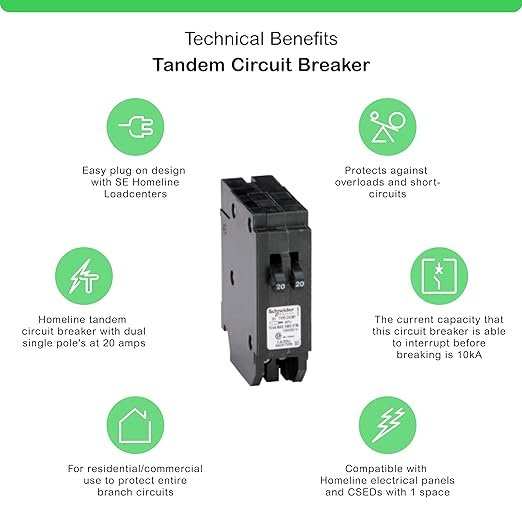 • Homeline tandem circuit breaker with dual single pole\’s at 20 amps