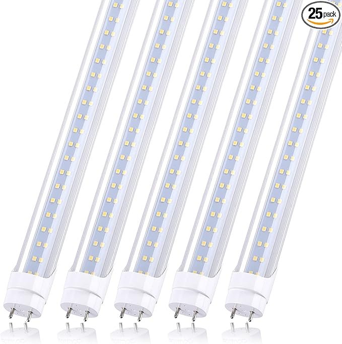 T8 LED Light Bulb 4FT, Ballast Bypass Required, 3360 Lumens, 2pin G13 End Day White 5000K, Replace 80W Fluorescent Light,Cold White 6000K, Dual-End Powered Clear Cover AC 85-277V 25Pack